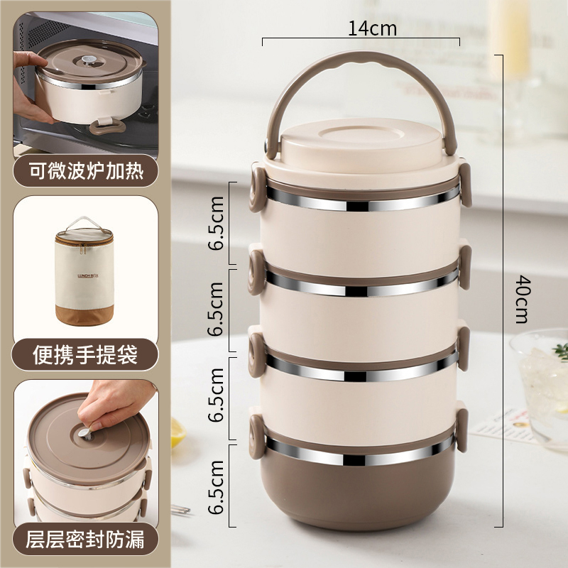New-style 4-Layer Portable Thermal Lunch Pot with Insulated Bag