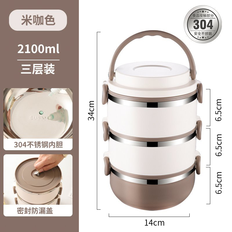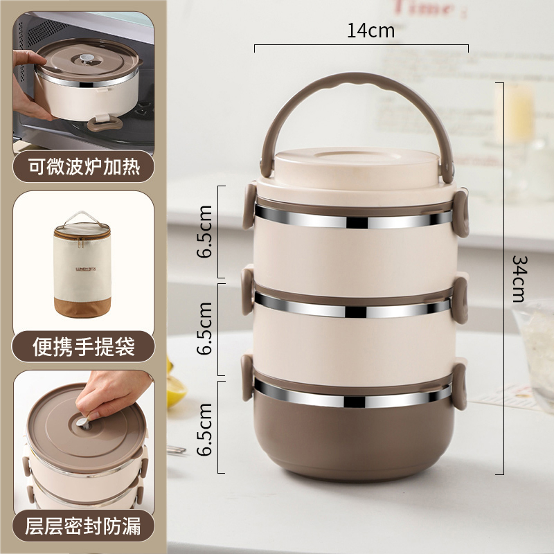New-style 3-Layer Portable Thermal Lunch Pot with Insulated Bag